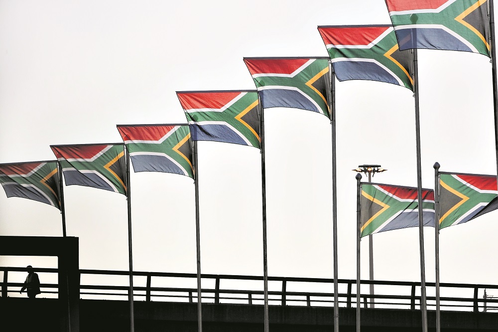 COLOURFUL WELCOME: A worker passes hundreds of South African flags lining routes in and out of Johannesburg’s OR Tambo International airport yesterday. Pic: Halden Krog. 25/05/2010. © The Times A workman walks past the hundreds of South African flag that line the routes in and out of O.R Tambo International Airport, 25 May 2010.